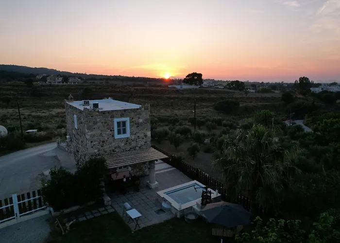 Az 2 hálószobát kínáló Traditional Kos Villa With Swimming Pool, Lawn Yard And Bbq egy merülőmedencét kínál terasszal, ahonnan a tengerre nyílik kilátás. A Hippokratész fája egy 10 perces kocsiútra van és az Agia Paraskevi bizánci temlom pedig 2 kilométeren belül elérhető.